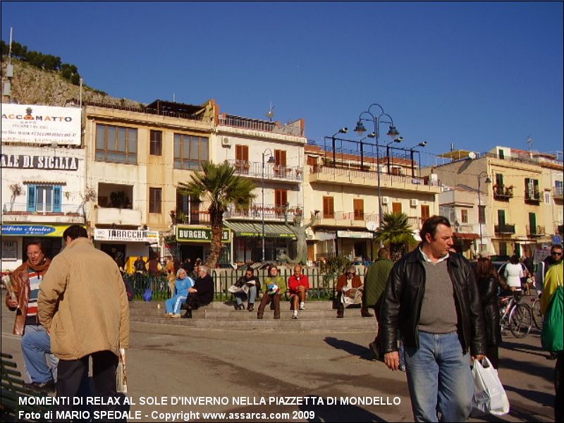Momenti di relax al sole d`inverno nella piazzetta di Mondello